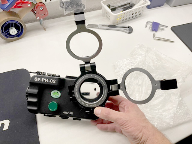 This process has a challenge. Once you take off your lens underwater, you might risk losing or scratching it. So the solution is to use a FLIP system.
