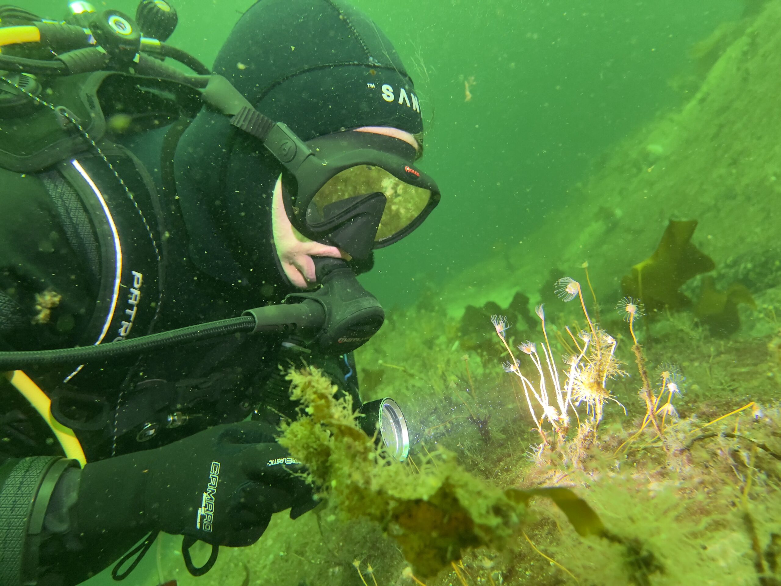 Since I make a living selling UV photo equipment, I have many different underwater housings myself. Fortunately, during the week of the safari, I also had the opportunity to play with them. I am always behind in testing new equipment from suppliers, so it is good to be away for several days. Changing equipment during a photo trip is not really something I recommend, because good photos are very much about being comfortable with your equipment and having all the buttons and functions completely under your skin. If you change equipment, you often get set back and have to rethink logitics and buoyancy. I am typically in Norway 2-3 times a year to dive and test, and one of these times is typically at Gulen, so this year I was able to combine business and pleasure. As always when I am out giving lectures or teaching, I had brought a lot of photo equipment with me for the participants to try, and it was popular. Many of the lamps and optics I had with me changed hands many times during the week.