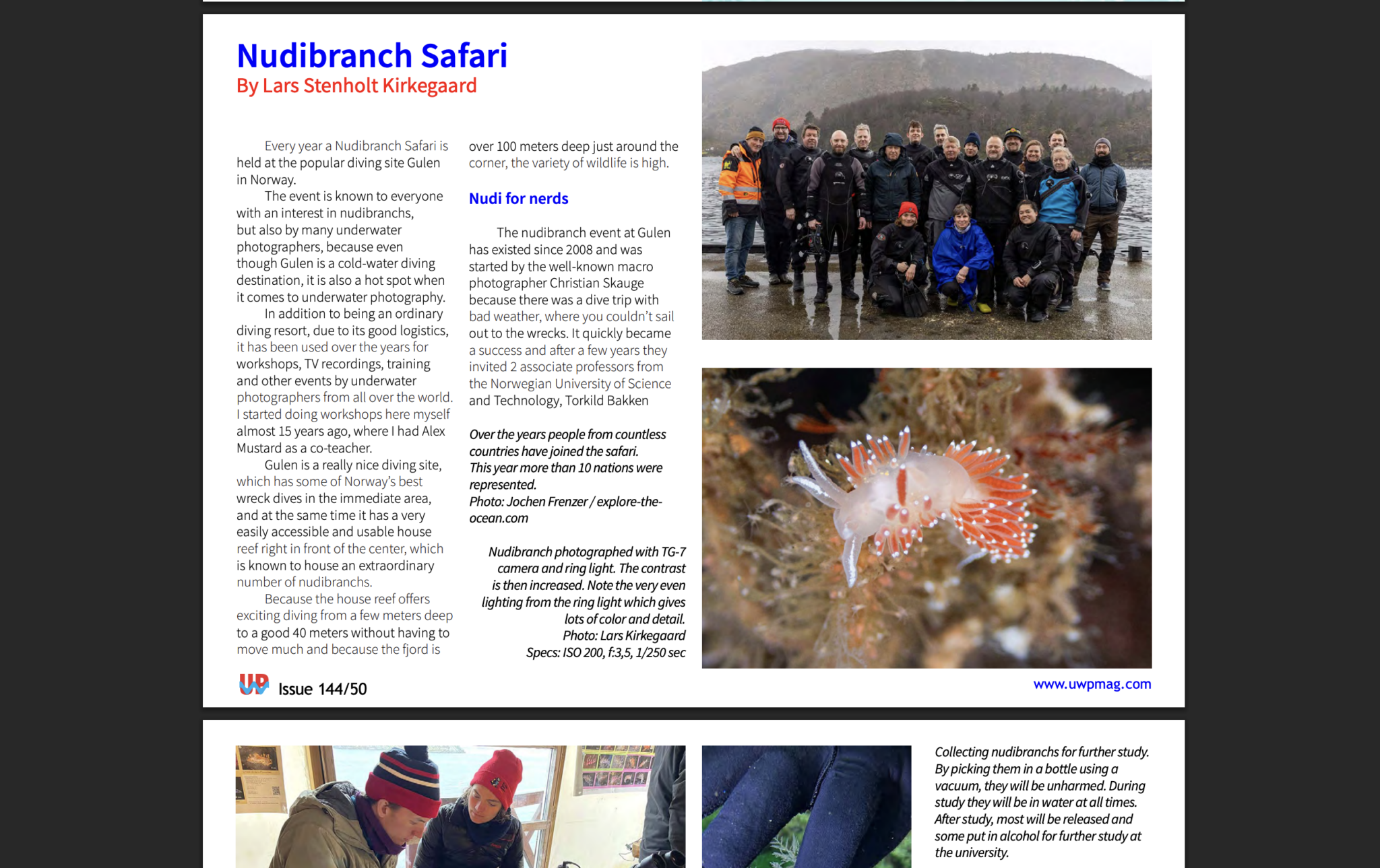 Every year a Nudibranch Safari is held at the popular diving site Gulen in Norway.